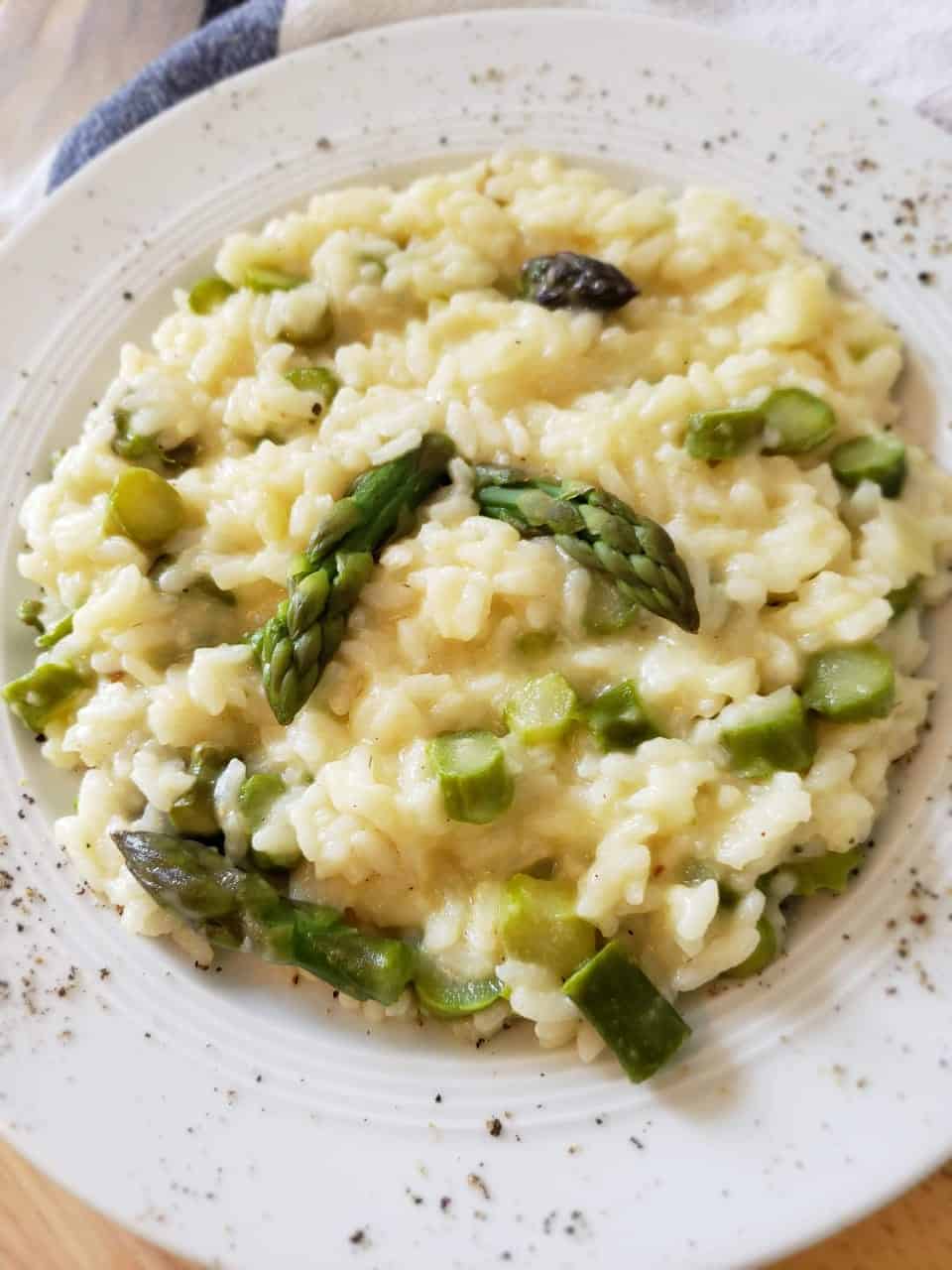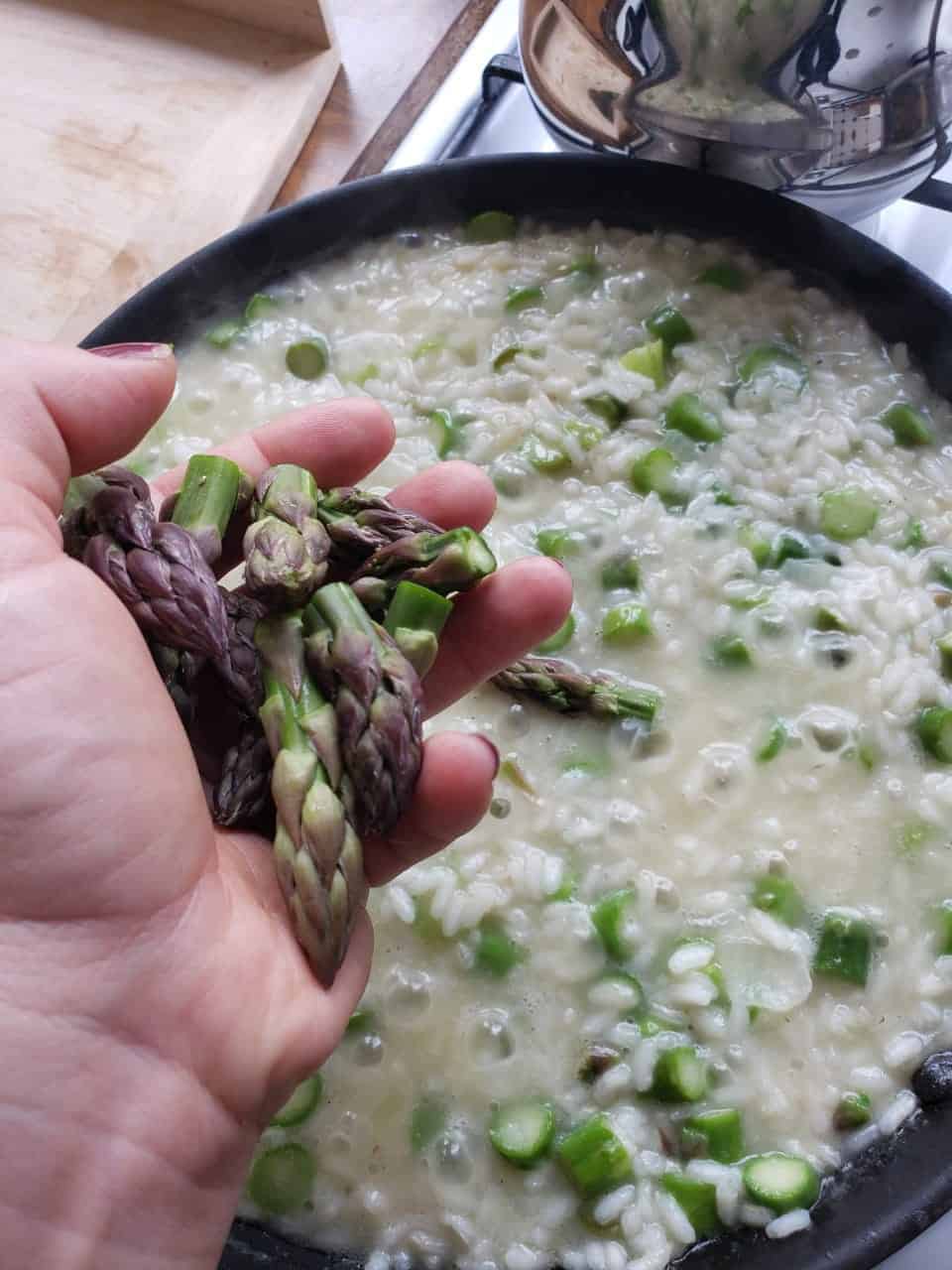 Die Spargelsaison beginnt, je nach Witterung, zwischen Mitte und Ende April und dauert bis Ende Juni. Traditionell endet das Spargelstechen am Johannitag, dem 24. Juni. Das cremige Spargelrisotto mit grünem Spargel ist einfach und schnell gemacht.