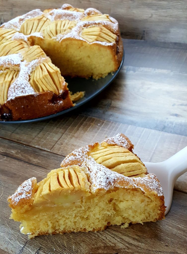 Äpfel waschen, schälen, vierteln, entkernen, und an der Rückseite ein paar mal einschneiden, aber nicht durchschneiden. Dicht nebeneinander, leicht in den Teig drücken. |